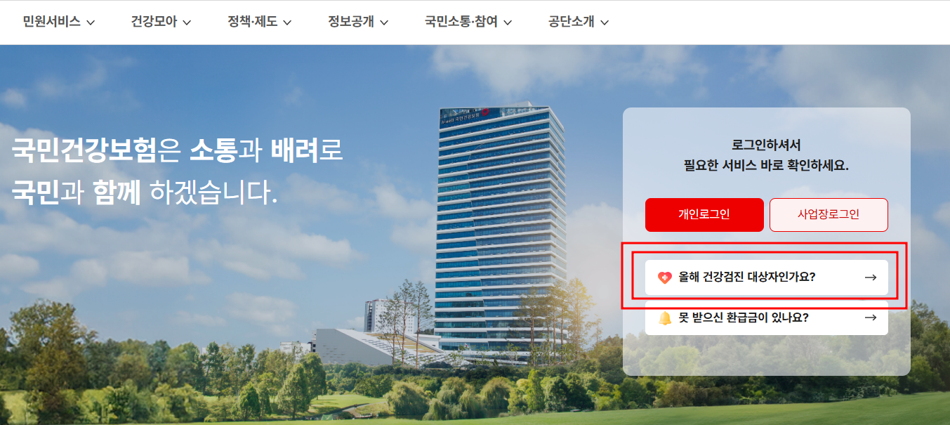 - 국민건강보험공단 홈페이지 접속