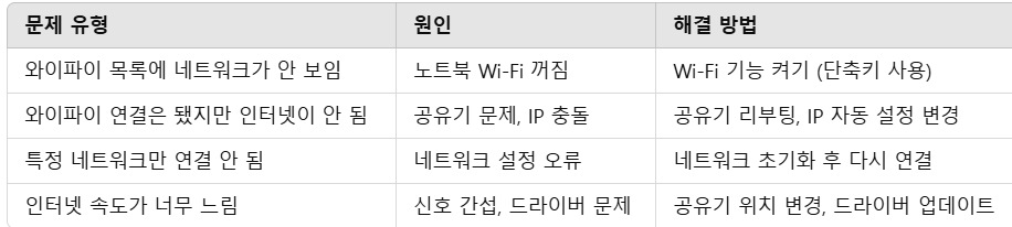 🔹 1단계: 노트북 Wi-Fi 기능이 켜져 있는지 확인