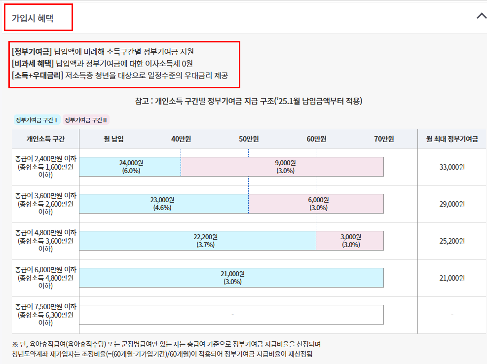 | 이자 혜택 | 기본 금리 + 정부 기여금 (최대 6%대 효과) |