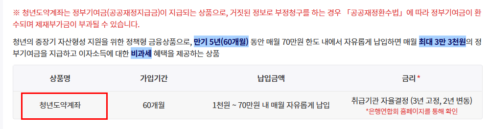 - 가입 후 다른 정부지원 적금과 중복 수령 불가