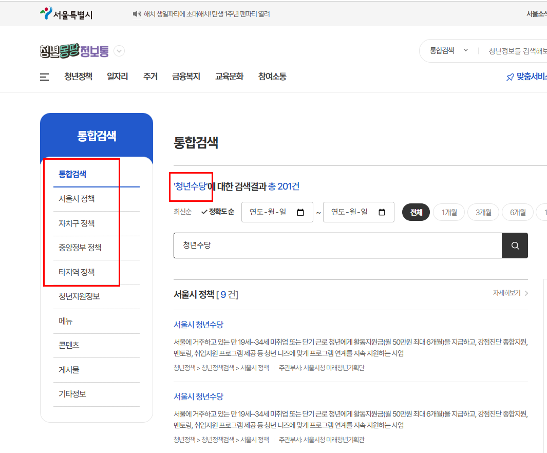 - 해당 지자체 청년포털 접속 (예: 서울청년포털)
