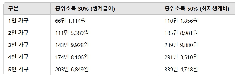 💡 "중위소득 50% 이하라면 다양한 정부 지원을 받을 수 있어요!"